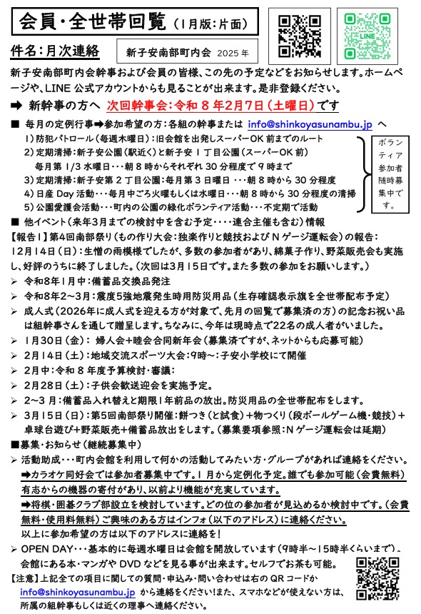 1月の回覧を載せます。第5回南部祭りの募集があります。