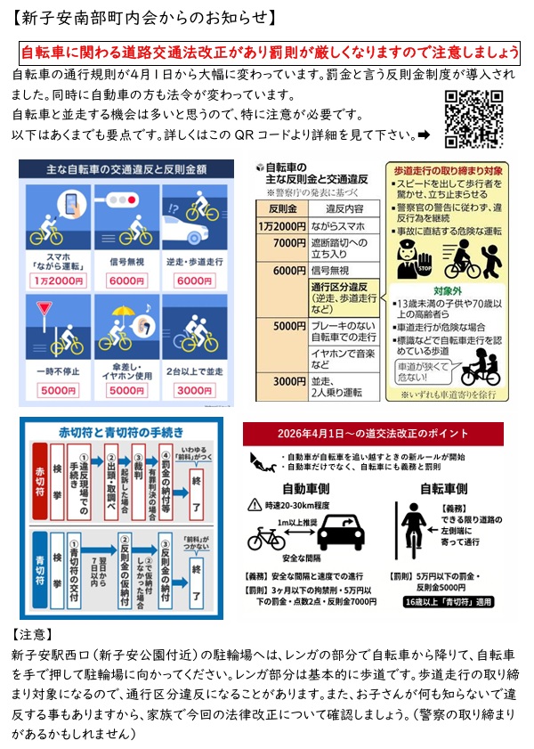 今月からみなさんとなじみのある自転車に関する道路交通法が改定されます。
